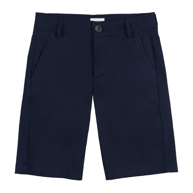 - Blue gabardine Bermuda shorts with an elastic waistband, front pockets, and back welt pockets. Elegant and detailed, they're perfect for a formal look.