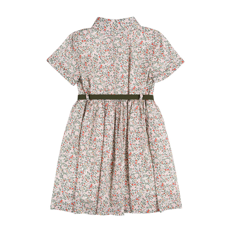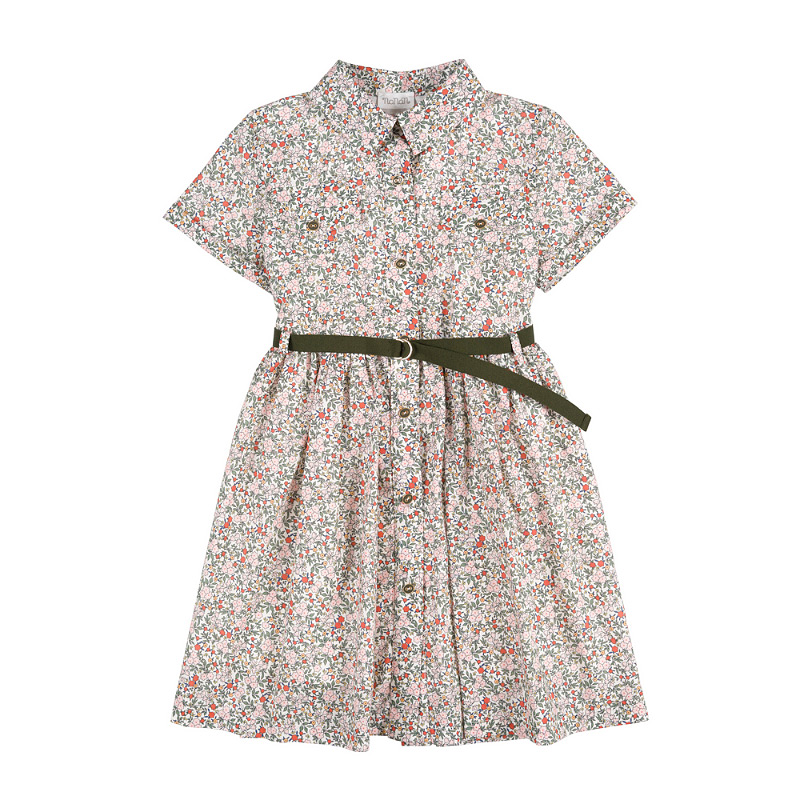 Green flowered shirtdress with belt