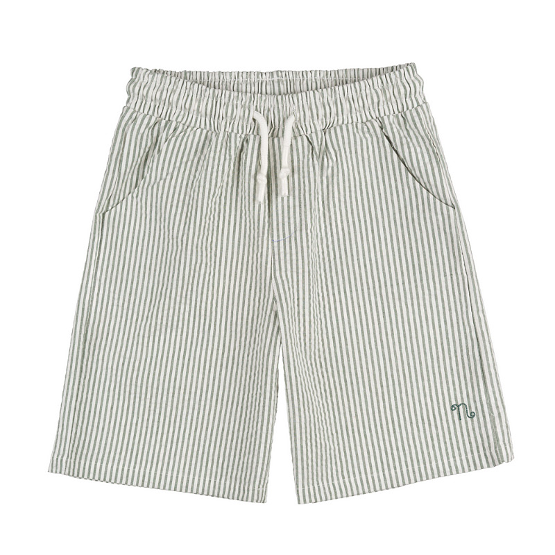 - Green striped Bermuda shorts with drawstring waist, comfortable and lightweight, perfect for a summer look.