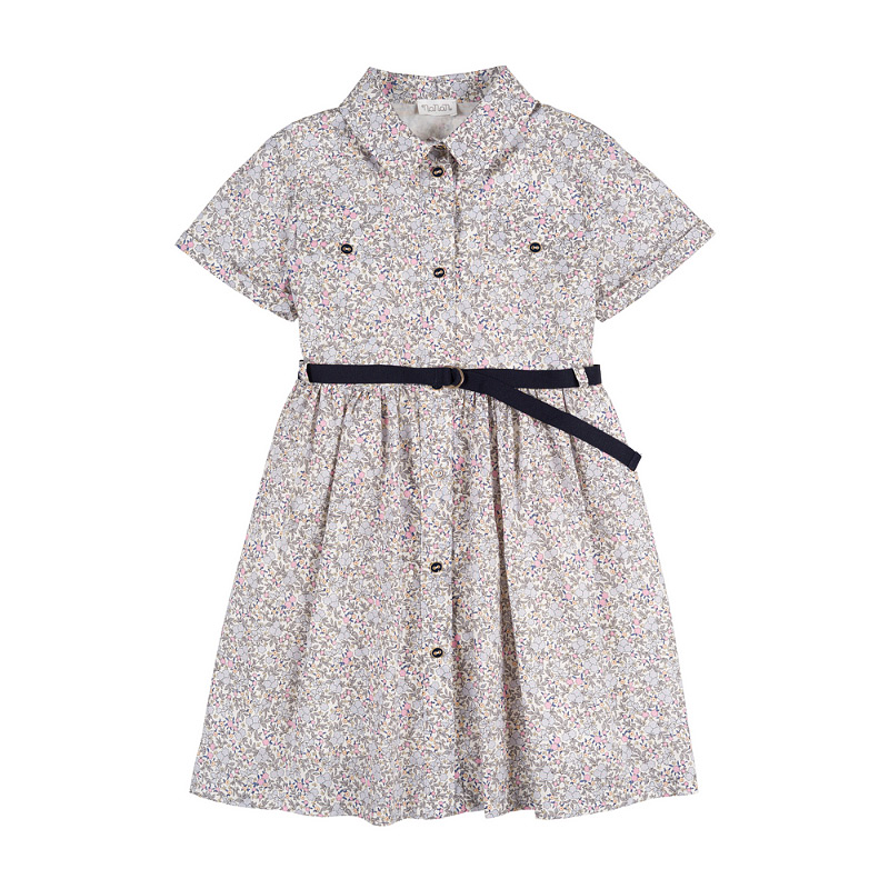 Pink flowered shirtdress with belt