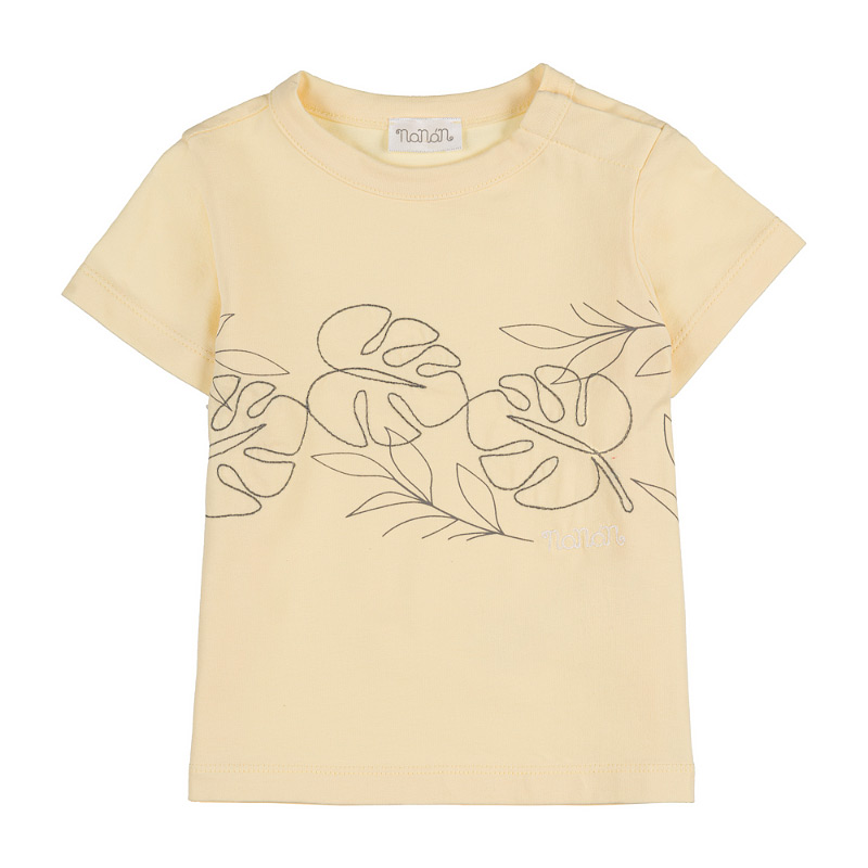 - Soft, stretchy yellow jersey T-shirt with a practical shoulder opening. A lightweight piece that's a sweet companion for little ones on sunny days.